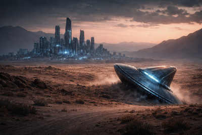 私とその街までは、かなりの距離はあるのだが、街もUFOもはっきりと分かった。UFOや町並みをみていると、人型のものたちが割とたくさん、街の方向から歩いてくるのが分かった。多分、エイリアンかとは思うが明らかに人間のようだと思われた。