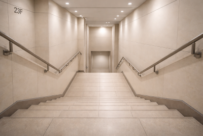 最初の夢は、非常に現実感の強い「階段」が舞台です。 しっかりとしたビルやマンションのような構造、白や薄いベージュに囲まれた硬質な空間。これは心理学的に見て、非常に重要な特徴を持っている。