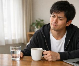 起床 → 渇きをあまり感じない → しばらくしてコーヒー