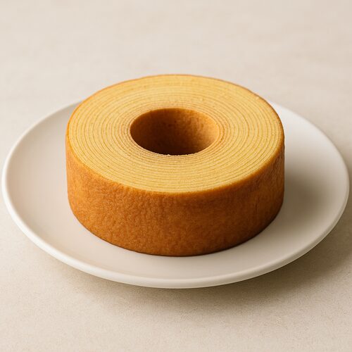 「バウムクーヘン(Baumkuchen)」はドイツ語で、「Baum=木」「Kuchen=ケーキ」を意味します。切り口がまるで木の年輪のように見えることから、この名前がつけられました。
